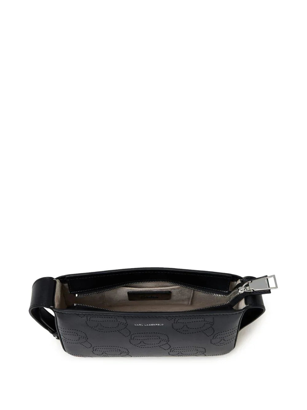This K/Ikonik 2.0 shoulder bag is perforated with Karl Lagerfeld's signature Ikonik Karl motif for a distinctive look. Its streamlined silhouette is equipped with an adjustable shoulder strap and top zip fastening.