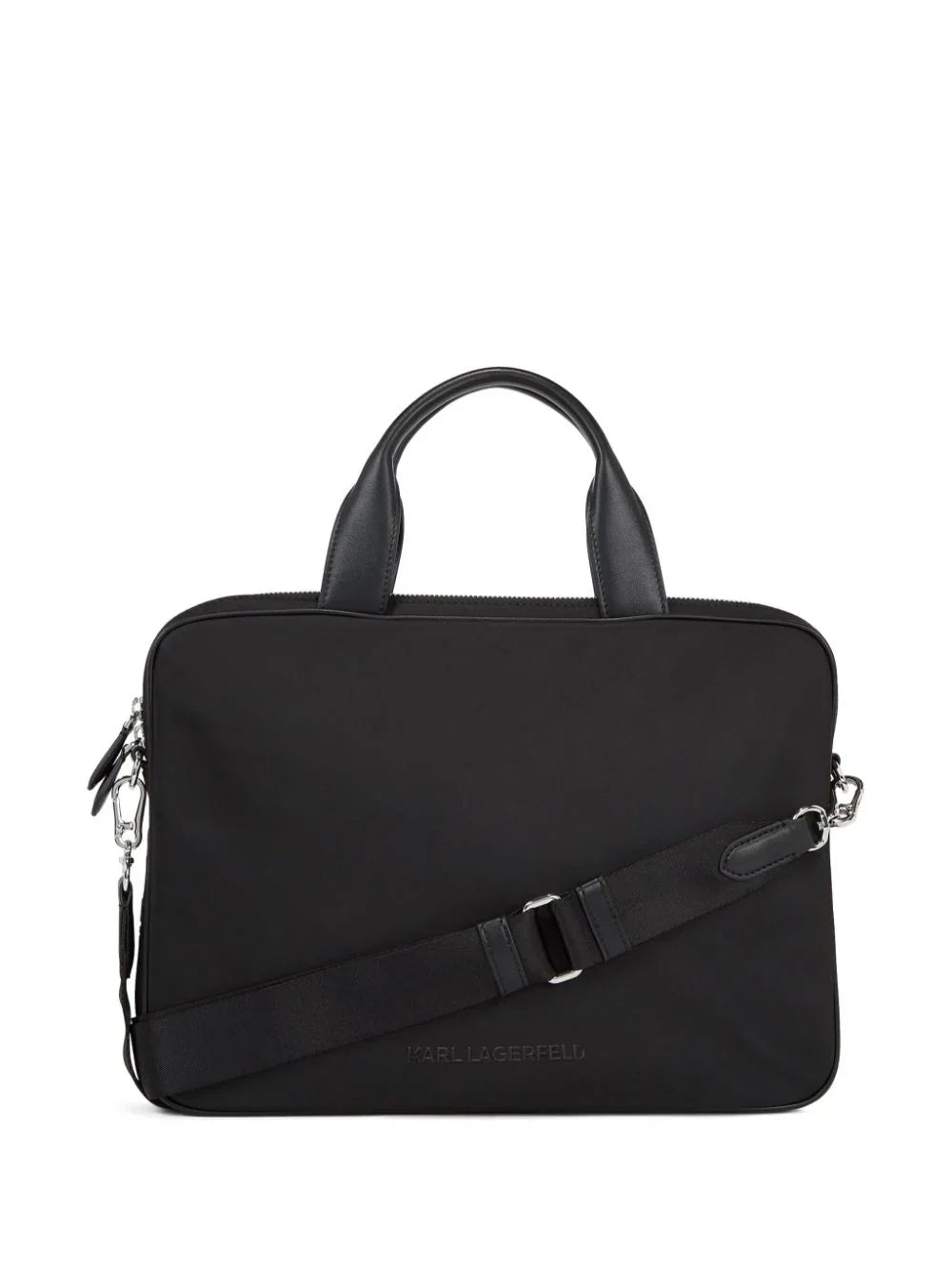 Taking its name from the signature K/Ikonik logo that appears at the front, this Karl Lagerfeld laptop bag is emblematic of the brand’s sleek aesthetic. It's fitted with two top handles and a shoulder strap.
